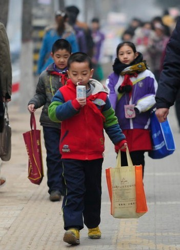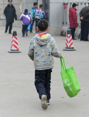 与赵先生意见一样,王女士的女儿上小学二年级,以前她的女儿老喊叫书包重、肩膀疼,整个人看上去没精神。“自从书包换成袋子,女儿再也不喊叫了。”王女士面带笑容说。2012年2月29日,西安市凤城一路西安外国语学院门前,多数小学生并没有背书包,而是手里拎着各式袋子上学。(责任编辑:叶子)