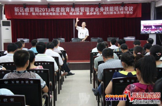 这是一场别开生面的培训课,这是一个激发自我潜能的课题研究,这是一次追寻教育梦的大胆探索。6月8日,由铜川市教育局新区分局与《视点陕西》网站共同主办、铜川新东方培训学校承办的“铜川新区教育局2013年度教育系统管理者业务技能培训会议”在新区管委会召开,邀请了2012年“陕西学校发展战略论坛”的主讲嘉宾、《视点陕西》特约总编辑、中国学校发展战略实战专家傅卫兵教授担任本次培训主讲师,新区各中小学校(幼儿园)领导百余人参加,铜川新区教育局局长李政文、《视点陕西》总编辑刘雷刚出席了培训会。
