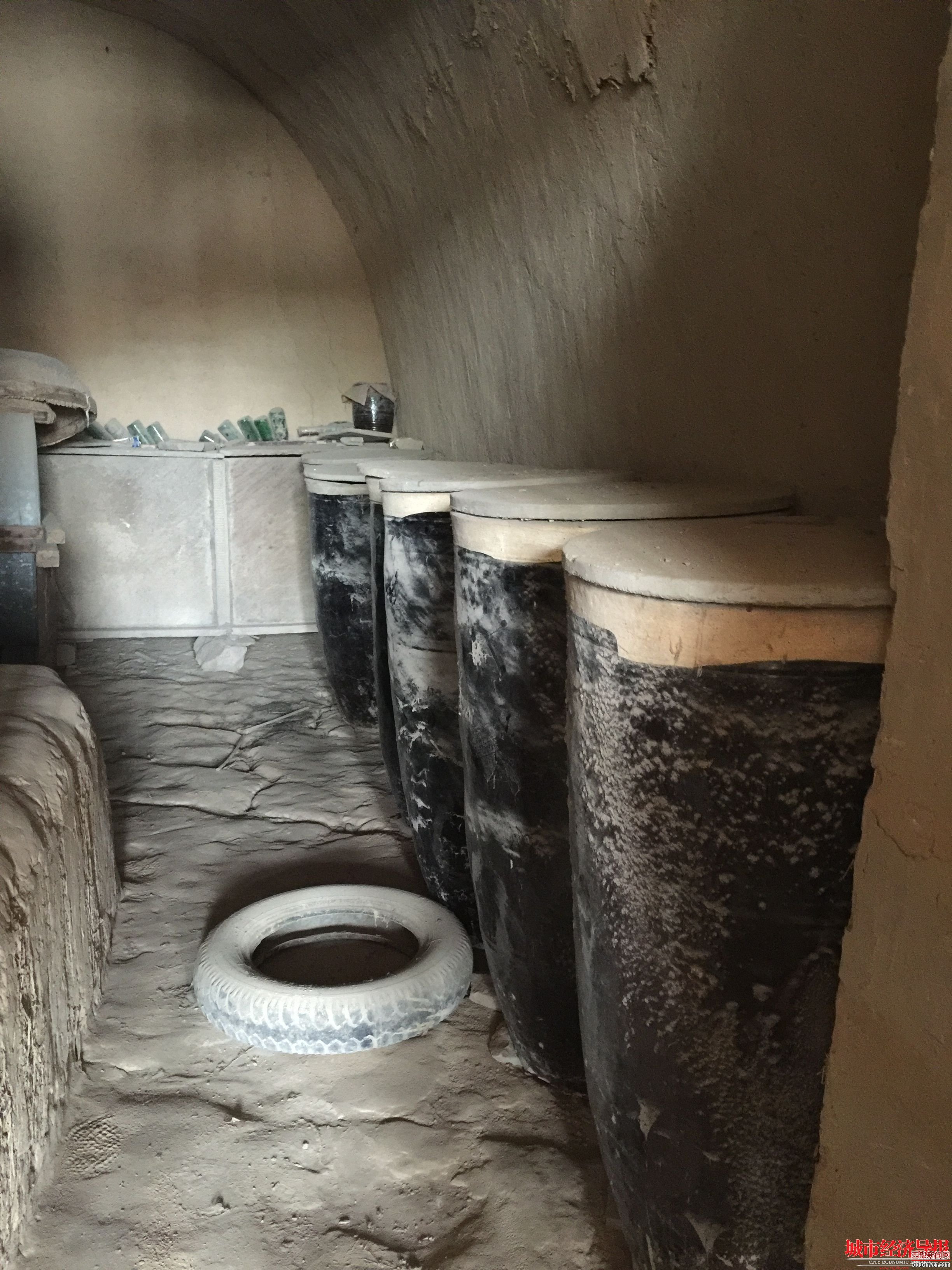 刘文革推开其中一间窑洞的木门,前厅放着老式的几个大柜子,后边则并排放了5个储粮的大缸,他说这是家里的储物间;旁边一间窑洞就是主卧,有火炕,有新式大立柜,还有桌凳等。刘文革说当时公安局抄家就是从这间房子搬走的电视、缝纫机、录音机!