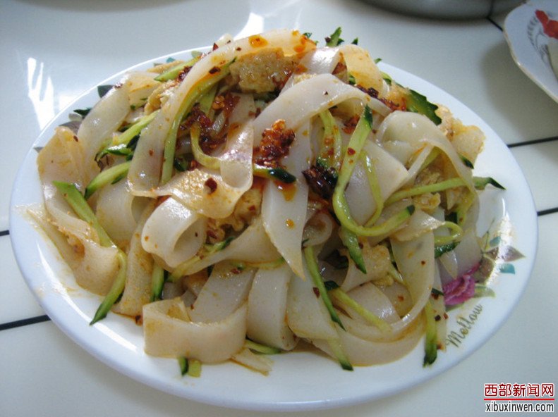 陕西凉皮种类繁多,做法各异,调拌时各具特色,口味也不同,在这里,仅举出几种。
