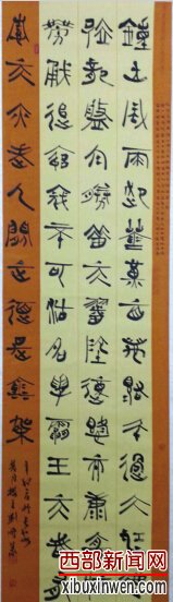光阴荏苒,我和刘鹏结识30余年了,彼此之间相知甚深,他悟性高,好学习,重传统,善创造,对金石书法五体皆通,有不少佳作问世,堪称同辈书家中一位佼佼者,当褒之!