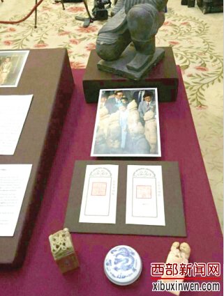 此图两方印章为篆刻家刘鹏于1986年英国女王访问陕西时所刻,现珍藏于英国皇室博物馆。