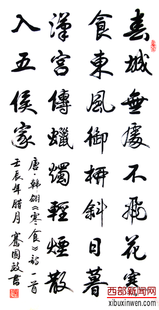 而如今,骞国政依然在用这只书法的笔书写着自己的崭新篇章,也以他个人的高贵品格丰富着作品的思想内涵,让我们真正懂得了:书品即人品。(文/西部新闻网总编张龙)