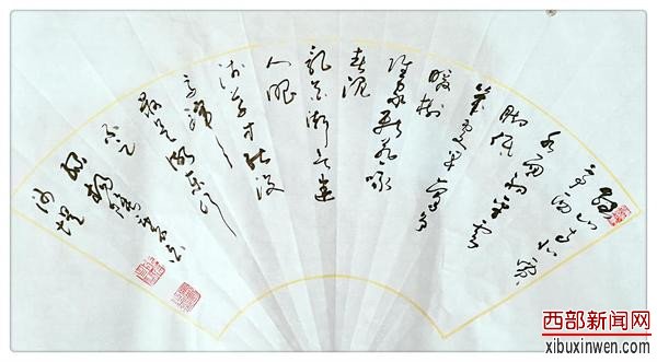 “少无适俗运,性本爱丘山.喜欢填词作诗,尤爱书法,前期经常习临三希堂法帖,怀素自叙帖,于右任标准草书等。八大山人,颜,柳,欧,苏等书法家的作品,亦经常拜谒自娱。后长期研习孙过庭(书谱)及怀素的(自叙帖),《千字文》逐渐形成自己的狂草风格,特别是左手草书更是以线条为表情,以点划会意,业界人称“左手狂草”。