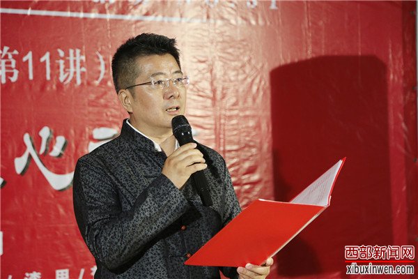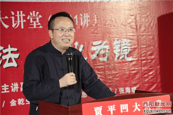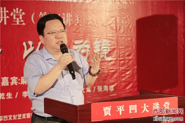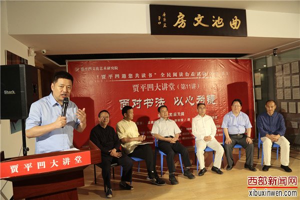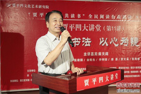 西部新闻网讯 (文/李浩 记者 叶子 资料提供 贾平凹文化艺术研究院 摄影 田建国)2017年6月18日,由贾平凹文化艺术研究院策划,由中国散文学会、陕西省新闻出版广电局、陕西省作家协会、贾平凹文化艺术研究院联合主办,由贾平凹读书社、西安大唐芙蓉园、西安曲江贾平凹馆共同承办的“贾平凹邀您共读书”全民阅读公益活动的第51场,也是贾平凹大讲堂第十一讲——著名书法家、陕西省书法家协会副主席麻天阔先生主讲《面对书法以心为镜——关于书法艺术鉴赏漫谈》在西安曲江贾平凹馆开讲。陕西日报、西安日报、西安晚报、三秦都市报、西部新闻网、西安文化网等多家媒体和西北武术院、陕西法智律师事务所、西安荞麦园美术博物馆、陕西永丰酒店餐饮管理有限公司、陕西秦鼎运茯茶有限公司、陕西金兆餐饮有限公司、西安户县龙窝酒厂、淳化御泉疗养院矿泉水厂、碑林武术协会等也支持了本次活动。西部新闻网全程报道本次盛况!