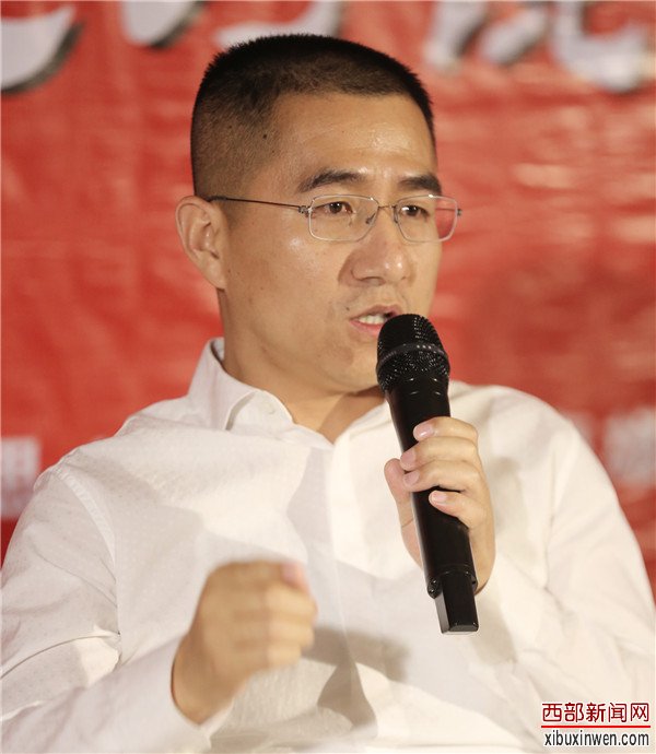 陕西秦鼎运茯茶有限公司总经理王多多和西部新闻网总编辑张龙在活动现场