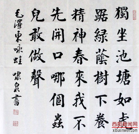 从作品中,不难感受到书法家刘啸泉对毛泽东诗词的理解和诠释,对毛泽东诗词意义的重新认识和融合,对毛泽东诗词文化个性的深入感悟,从而使作品具有较高的学术品位。由此,举办以毛泽东诗词为题材的书法作品展,具有特别的意义,通过展览可以让我们重温中国革命所走过的艰难历程,再一次深刻领略毛泽东同志作为一代伟人所特有的开阔襟怀和豪迈的艺术风采。