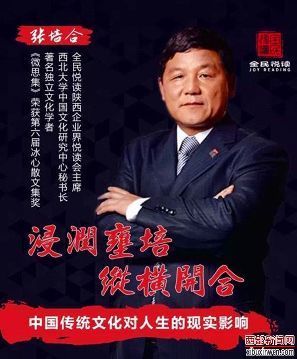 西部新闻网讯 (记者 张丽)“静”是“燥”的反观、“慧”是“愚”的挑战和“微”是“妙”的同行,一位著名的文化学者,一个思想者的人生,看他如何在凡尘世界“仰高山流水、观人生百态”!9月20日晚8时,著名文化学者、冰心散文集奖得主、全民悦读陕西企业界悦读会主席、陕西省企业文化建设协会会长张培合在全民悦读直播中开讲《中国传统文化对人生的现实影响》,全面解析了中国传统文化和中国传统文化对人生的深远意义;同时还解答了全民悦读听众提问的若干问题。据悉,全国70多家悦读会进行了同步直播,此次全国直播听众达到10万多人,为同类悦读会之最,西部新闻网全程直击本次直播!