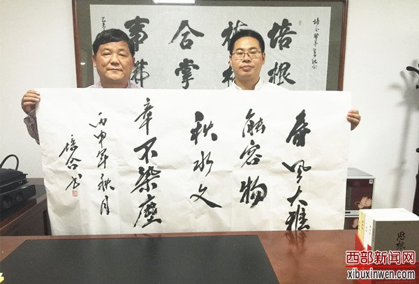 张培合为西部新闻网总编辑张龙赠送墨宝