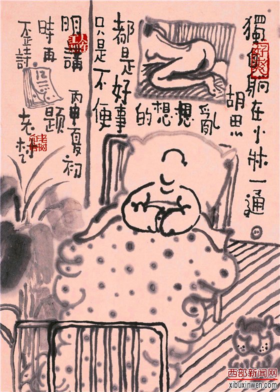 ![]() 画展海报 ![]() 老树致辞 ![]() 海霞天地美术馆馆长何沛先生致辞 ![]() 北京饮兰山房艺术发展有限公司董事长徐斗先生致辞 ![]() 开幕式现场人气爆棚 ![]() 老树现场给粉丝签名 ![]() 画展作品 ![]() 老树先生接受西部新闻网专访 接受西部新闻网记者采访时老树很幽默,“已经感受到了西安朋友们的热情,粉丝大都是中老年妇女。”大家跟着乐了,初见的拘谨和陌生就渐淡渐散了。他说:“对于画画这件事,作为一个业余绘画爱好者,持续的绘画过程给我带来的影响谈不上有多大,但却很具体。其中一个具体的影响是,它改变了我个人跟外部世界各种事物的关系。比如,在没有画画之前,每天出得门去,眼睛投向一个混乱嘈杂的远方,内心充满抱怨和没来由的愤怒,与无数活泼泼的生命擦肩而过,从无数奇妙的事物旁边匆匆走过。自以为对身边的一切熟稔于心,其实却是一无所知。正是因为画画,开始注意到四季的移易、风物的变换,开始仔细地观察不同花儿的样子、颜色变化,叶子是对生还是互生的,从某个角度看过去物体的阴阳向背,物体表面的不同肌理,马路上的一条裂痕,横亘眼前的一根树枝,等等。这个变化似乎微不足道,但对于我来说就很重要。能够觉察到自己的这个一无所知,心中开始有了谦卑,老实多了。在这个惶惶不安的时代里,在我这个年龄上,能谦卑一点地活着,复归于对周边事物的好奇与专注,并因了这种好奇与专注,渐渐有了一种持续的喜悦和平静,后来又迷上烧陶,很上瘾。这些都是自己烧的残次品,烧成的都给人拿走了。残次也好,有独特的味道。”也许因了这持续的喜悦和平静,老树的画中人,悠闲简静明朗。却并不是那些所谓的隐士形象,是街头巷尾市井喧哗滋味饱满的世俗常人,他们性情、生动、自然,关切现实又洞明人生。 采访到最后他说出来心声他说:“我真不是像画里看到的那么悠闲。我跟大家都一样,充满了各种焦虑。我每天处理各种烂事,见各种人,累得像驴似的。所以说,我这是没什么想什么,现实要硬着头皮去做事,因为躲不了,在画画时就躲到自己的世界里歇一歇喘口气。”于是他画,画一种虽不能至却心向往之的空间情境,他的画成了另一个老树在无人知晓的世界里的梦呓,这正好也是他画展的另一个主题“哄哄自己”。 ![]() 作品欣赏 ![]() 作品欣赏 ![]() 作品欣赏 ![]() 作品欣赏 ![]() 作品欣赏 ![]() 作品欣赏 ![]()