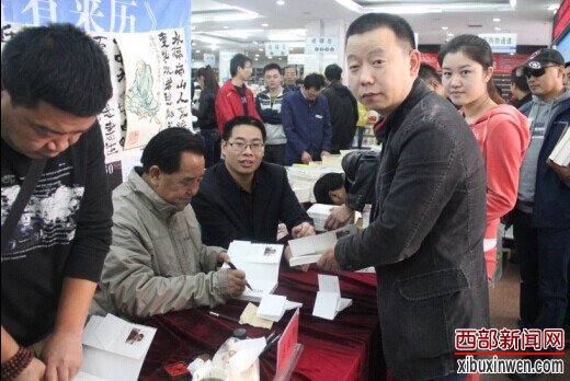 西部新闻网讯(记者 张丽 刘国盛 通讯员 沈卫东)2014年11月2日下午2点30分,被誉为浪漫主义文学“最后的骑士”、《最后一个匈奴》的作者高建群携新作《你我皆有来历》在西安图书大厦举行了签售会。在签售会上,不同年龄段的读者拿着书排起了长长的队伍等待着著名作家高建群签名售书。有的读者特意从外地赶来,其中有从渭南、汉中、临潼等周边地区赶来的粉丝。高建群也特意准备了10余幅自己的字画,送给这些可爱的读者。据了解在长达三个小时的签售会上作家高建群共签售作品600余本。西部新闻网总编张龙也应邀参加了签售会。
