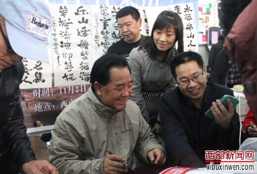 签售会现场不时有粉丝问了一些有趣问题让作家高建群笑意融融