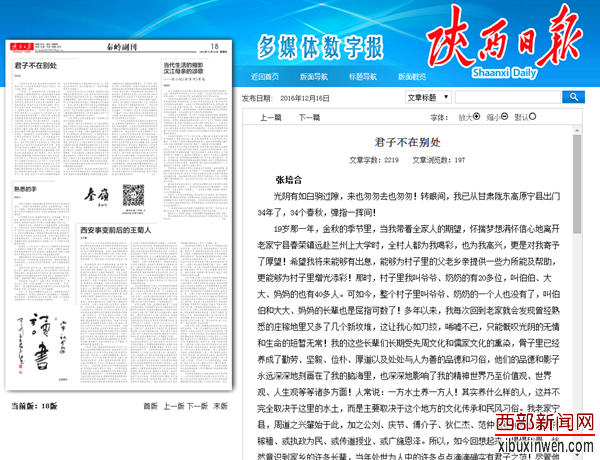 这次活动之后,大家对君子文化开始重新审视、重新研究和认真践行及弘扬。君子文化是中国几千年优秀文化塑造的理想人格,我们的社会发展需要君子文化,也需要弘扬君子精神,更需要大量有君子之范的人在当下社会起引领和示范作用,以遏制败坏社会风尚的小人文化的泛滥和肆虐。这次陕西日报在文艺版面头条发表张培合先生的文章《君子不在别处》,就是对君子文化的一种大力弘扬,也是对践行君子文化的一种旗帜鲜明的支持。这种舆论导向作用,有利于大张旗鼓地去宣传并响应中央关于增强全民文化认同以及增强文化自信的精神;也更有利于落实中央政府号召全体文艺工作者要“胸中有大义、心中有人民、肩上有责任和笔下有乾坤”的倡导。