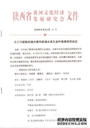 这次调查活动由原陕西省委副书记、陕西省黄河文化经济发展研究会会长李溪溥、董继昌任组长。陕西省黄研会常务副会长赵保玉、毛光启任副组长。