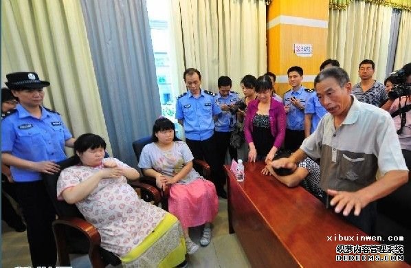 7月31日,被拐5年的双胞胎姐妹孙丽、孙敏的父亲孙义直(右一)无法接受女儿现状,表示不想认领
