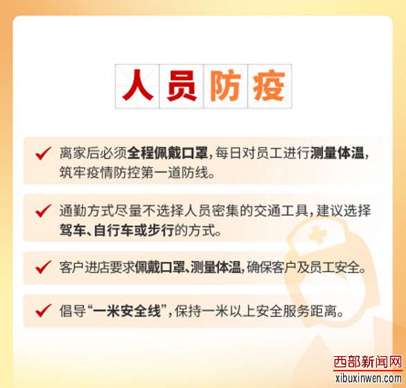 针对办公区、展厅区,休息区等,定时进行消毒杀菌,公共区域放置免洗手液,确保卫生安全;保持店内的空气流通,加强开窗通风换气。