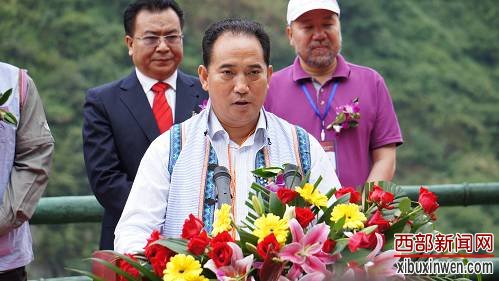 中国登山协会副主席 国家登山队队长王勇峰在启动仪式上讲话 怒江"攀月祈福 2012年全国群众登山健身大会暨福贡高黎贡山登山活动"是继2008年怒江成功举办首届云南少数民族服装服饰文化节、首届云南少数民族酒歌大赛、首届中国怒江皮划艇野水国际公开赛之后,在怒江成功举办的又一次体育精神与厚重民族文化完美结合的激情盛会,一次纵情峡谷奇观、感受自然、体验人生的美丽之约,一次全民登山攀月与祈福迎祥的神奇之旅、圆梦之旅。