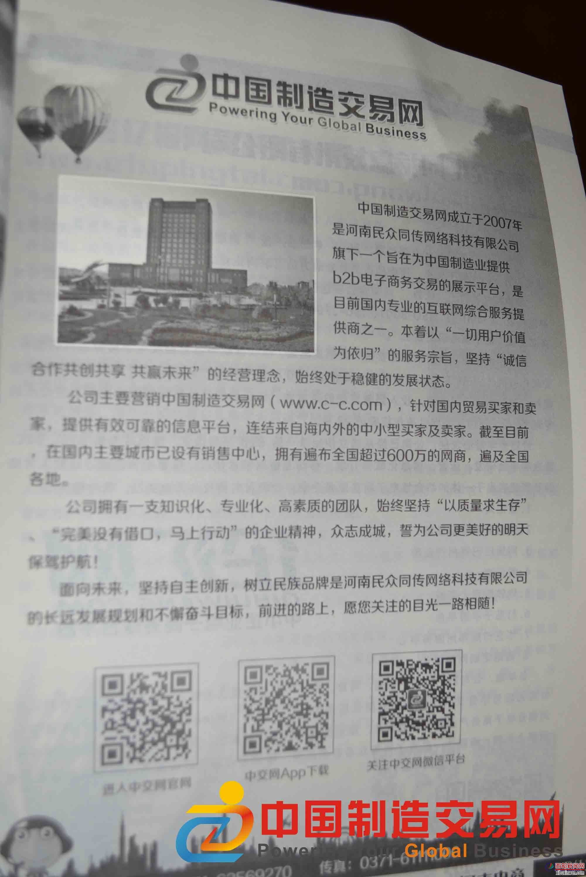 成立于2007年的中国制造交易网,隶属于河南民众同传网络科技有限公司,简称中交网(http://www.c-c.com/),是一个旨在为中国制造业提供b2b电子商务交易展示平台。中交网所推出的“按绝对效果付费无效果退款”服务模式彻底颠覆了传统电子商务的服务方式,这种模式必将引领并成为未来传统电子商务的主流服务模式。