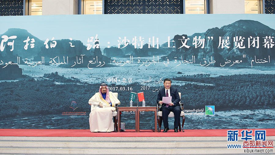 3月16日,国家主席习近平在北京人民大会堂同沙特阿拉伯王国国王萨勒曼举行会谈。这是会谈后,两国元首共同出席在国家博物馆举行的“阿拉伯之路-沙特出土文物展”闭幕式。新华社记者姚大伟摄