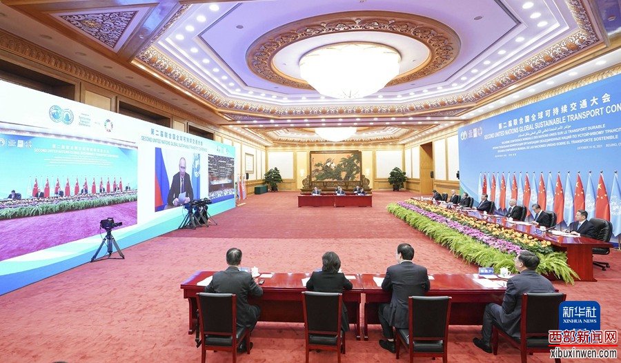 第二届联合国全球可持续交通大会于10月14日至16日以线上线下相结合方式在北京举行。俄罗斯总统普京、土库曼斯坦总统别尔德穆哈梅多夫、埃塞俄比亚总统萨赫勒-沃克、巴拿马总统科尔蒂索、荷兰首相吕特、联合国秘书长古特雷斯等应邀以视频方式发表致辞。171个国家的代表出席了开幕式。