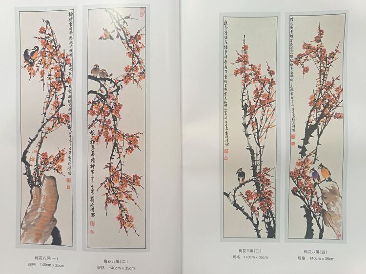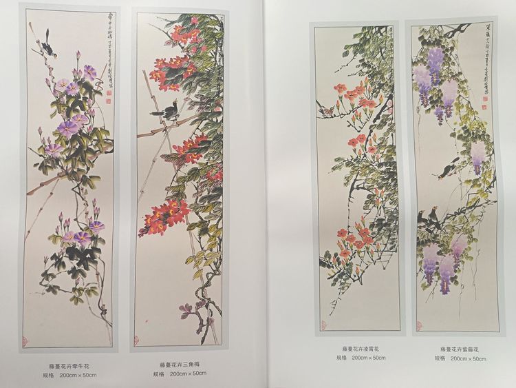 2006年,《刘晓贤花鸟画集》正式付梓,这部画集不仅收录了上述经典长卷与条屏作品,更囊括24套四条屏佳作,题材广泛、技法全面,既是她数十年艺术生涯的心血结晶,也是其艺术成就的集中展现。翻开画集,仿佛步入一座繁花似锦、百鸟和鸣的艺术殿堂,令人沉醉其间,流连忘返。