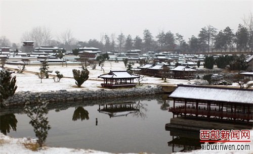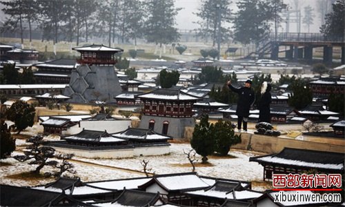 在微缩景观区域,一棵棵微型绿植、一座座迷你宫殿从松软的雪地中“破雪而出”。导游说这些微缩建筑的一砖一瓦都是由手工打造的,是绝对不可错过的景点!这里的每一座小宫殿、每一条小道都是按照1:15的比例,根据原貌修建的,据说,从前里面每一个屋檐上还都挂着小灯笼、路上还有小人。游人是可以走进去玩的,有好多人就把那些“小可爱”据为己有后。大明宫国家遗址公园为了更好保护,只能是“只可远观,而不可亵玩焉”,但是在这里还是可以感受到这座宫殿昔日的恢弘。在这里,我也号召一下大家,在游园的过程中要爱护这里的一草一木。