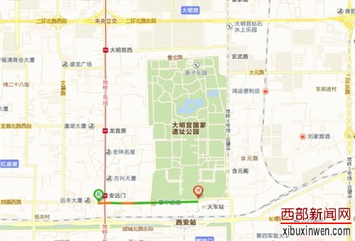 乘坐地铁二号线到安远门站下车,C出口出站,向东延自强东路直行1公里。