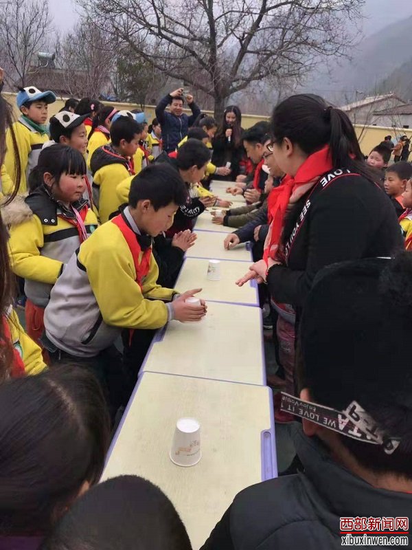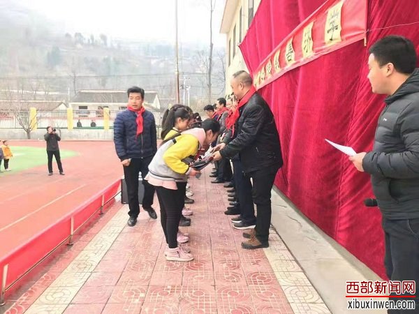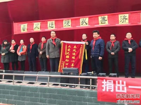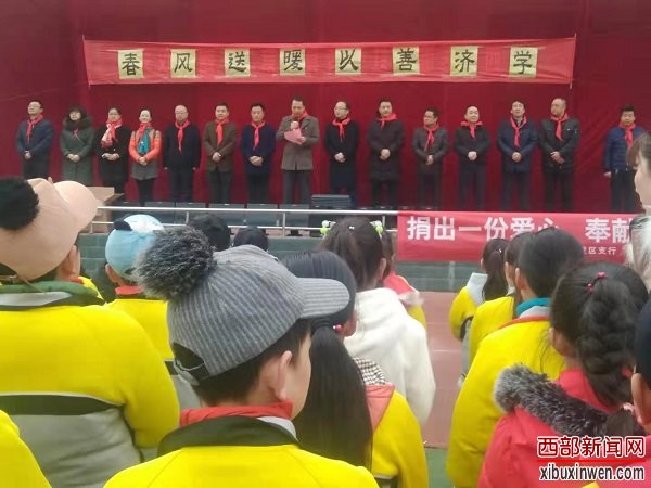 日前,在陈仓区香泉镇孙家村小学院内,来自农业银行宝鸡开发区支行的十余名爱心助学志愿者在该行纪委书记程永刚、副行长章涛等领导的带领下,向该学校进行了爱心物资捐赠活动。