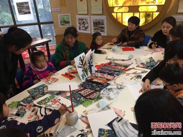 在活动体验区,人们兴致怏然的观看皮影木偶演出,体验剪纸、葫芦、团扇、拓片、布贴画、书法等,并与非遗传传承人面对面互动交流,在驻馆导师的指导下亲手制作。