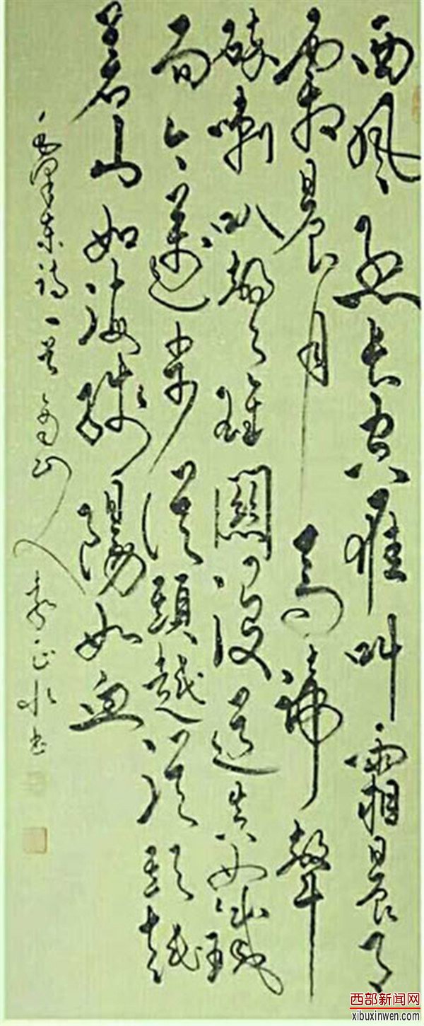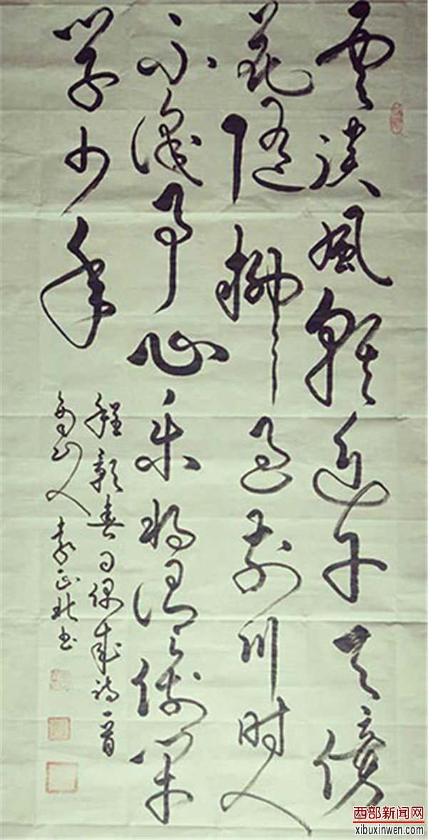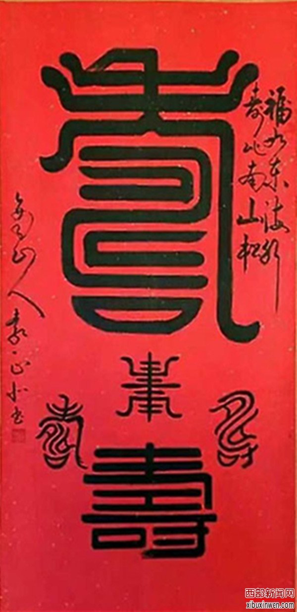 他的创作功底十分深厚,尤其在草书创作艺术上非常独特。作品艺术手法流畅、潇洒、精悍。把每个汉字艺术表现得活灵活现,惟妙惟肖,栩栩如生,让人一饱眼福,既是一种艺术欣赏,也是一种精神享受,使人留连忘返。特别是他创作的《猴桃寿》艺术字作品,可称为当代书法艺术领域一绝,说它是前无古人,后无来者,毫不夸张。他的《游子吟》等作品,在中国首届“福”文化大赛中荣获国家一等奖。
