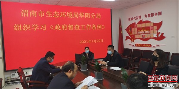 近日,在疫情防控的特殊时期,渭南市生态环境局华阴分局组织中层以上人员召开了学习《政府督查工作条例》专题会议,会议重点学习了政府督查的主要内容、督查的对象、督查的方式以及督查结果的运用等。