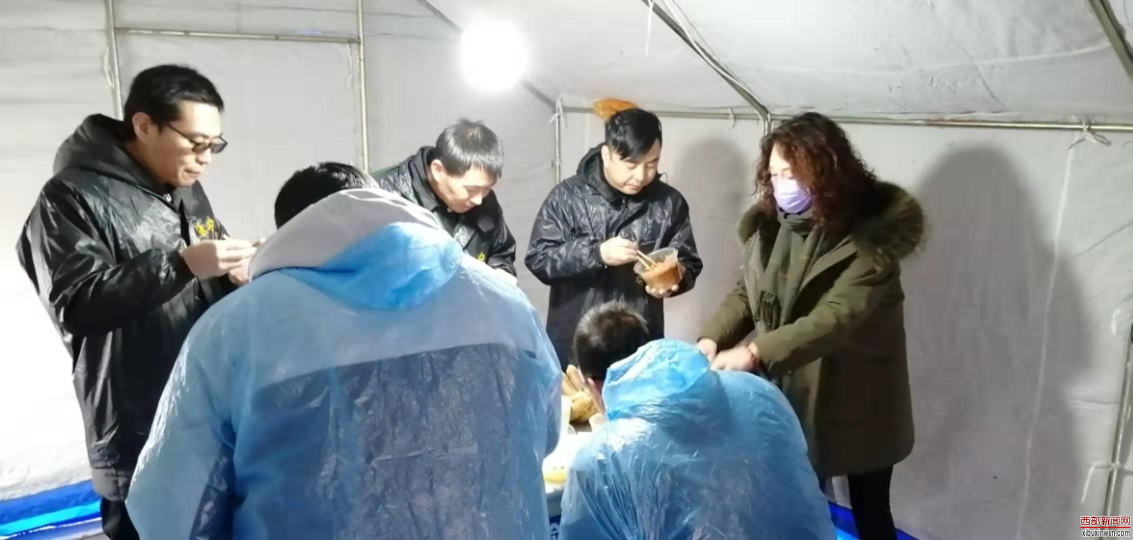 最难的是防护物资保障,非常时刻,消毒液、酒精、手套、口罩、防护服紧缺断货,她每天咨询药材公司货源情况,安排办公室两名同志在医药超市排队购买,同时多方打听、多渠道筹集物资,在她的感染下,韩城新章孔子学堂等爱心人士捐来84消毒液、口罩、硫磺皂、矿泉水、毛巾、喷壶,为一线防疫解了燃眉之急。防护服紧缺买不到,她就发动人员购置了密封较好的雨衣当临时防护服,在硬纸板上自刻了“韩城交通 众志成城 抗击疫情”12个字,手工印制了防护服。夜班值守风大、天冷,有时还下雨,她就到民政局借了帐篷,在火车站搭起了“防疫办公室”,基本保障了一线防疫工作所需。