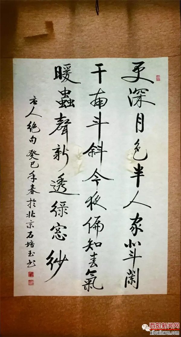 西部新闻网讯 2018年2月6日,石培玉,男,1960年8月出生,陕西省榆林市横山县石窑则村人。现任中国书画家协会理事、陕西省书法家协会会员、陕西省著名人物档案协会会员、榆林市政协委员、榆林市书画摄影协会主席、榆林市书画摄影报社社长、榆林市作家协会理事、榆林市黄土文化协会理事、陕西榆林古玩字画鉴定师、榆林市行行行培玉广告装饰公司董事长、横山县(五、六、七)届政协常委。