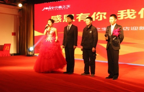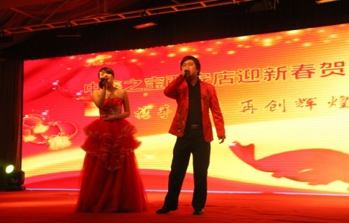 让现场气氛高潮迭起的是本场晚会艺术总监、西部新闻网总编张龙先生的闪亮登场,他演唱的《父亲》、《母亲》让现场观众领略了这位“中国炒作第一人”的魅力。张龙先生现场改词“到什么时候也不能忘,中鑫之宝这个家……”,他同家属代表亲切握手、拥抱,他和台下观众的互动赢得掌声雷动,尖叫声此起彼伏,高潮迭起,台上台下激情一片,每个人都沉浸在喜庆的氛围之中。