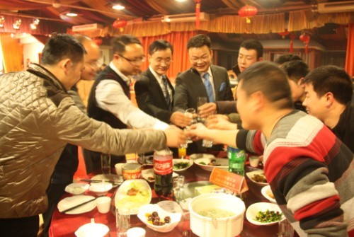 公司领导白总 邹总向大家敬酒