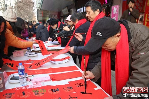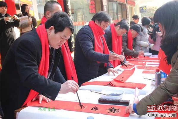 在书写春联前,还举行了简短的迎新春写春联送祝福启动仪式。活动由李佩泽主持,宝鸡市人大常委会教育科学文化卫生工作委员会主任乔文录、省书法家协会副主席李晔、李平逊分别致辞,对出席活动的领导和群众表示欢迎并致以新春的祝福。出席本次活动的还有陕西省老年书画会理事郭明科、宝鸡市老年书画会会长窦孝秦、宝鸡市老年书画学会李宗贤等在现场挥毫泼墨书写春联。