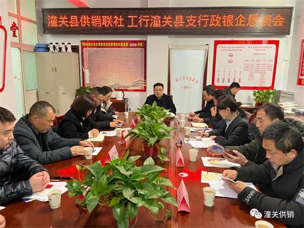 2月15日,潼关县供销联社组织召开政银企合作恳谈会,工商银行渭南分行普惠金融事业部雷耀峰总经理、总经理助理张欢,潼关支行杜永峰副行长参会指导,县社党组书记、主任刘西宏主持会议,旨在搭建沟通交流平台,了解企业发展中存在的困难和问题,营造政府搭台、银企协作、共赢发展的良好金融营商环境。