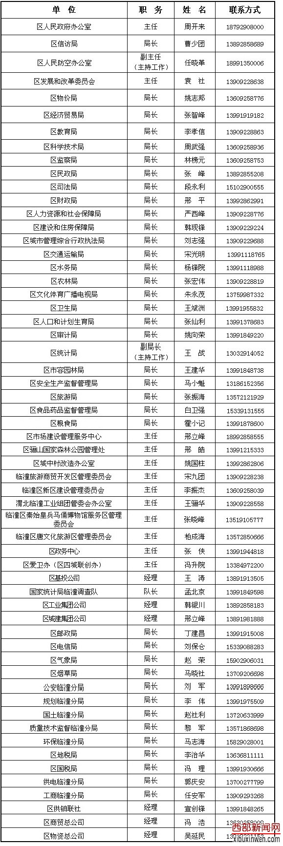 春节前夕,临潼区开通了“区长热线”,并向社会公布了89位区政府组成人员及有关单位行政主要领导的电话,区长刘三民的手机号也在公布之列。