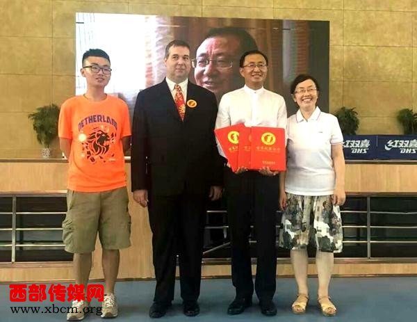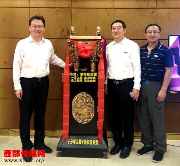 西安培华学院理事长姜波(左)与徐国富、徐长清