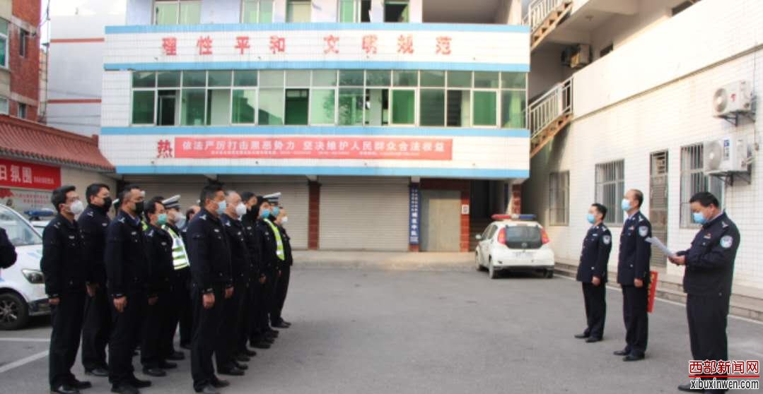 本网讯:通讯员 李巍 2月25日上午,汉中市西乡县公安局党委副书记、政委张飞,县公安局党委委员、副局长、交警大队大队长张凯,县公安局党委委员、政工室主任王德银到交警大队,代表县局对在新冠肺炎疫情防控期间行动迅速、做出突出贡献的交警大队予以集体嘉奖。