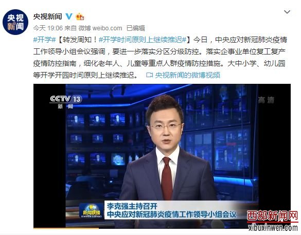 从“央视新闻”获悉,2月27日,中央应对新冠肺炎疫情工作领导小组会议强调,要进一步落实分区分级防控。落实企事业单位复工复产疫情防控指南,细化老年人、儿童等重点人群疫情防控措施。大中小学、幼儿园等开学开园时间原则上继续推迟。