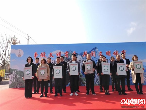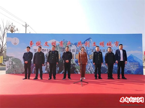 3月3日,华阴市2023年“争做文明商户,共创文明城市”暨文明诚信示范店、文明诚信市场授牌表彰仪式在一河两岸广场举行,市委常委、宣传部部长鲍明侠,副市长董旭辉出席活动。活动现场市场监督管理局党委书记、局长郑华鹏同志宣读了《创建文明诚信示范经营单位倡议书》;市文明办主任高鹏同志《关于表彰华阴市“文明诚信示范店”“文明诚信市场”的决定》,与会领导为三个文明诚信市场、57个文明诚信示范店授牌表彰。