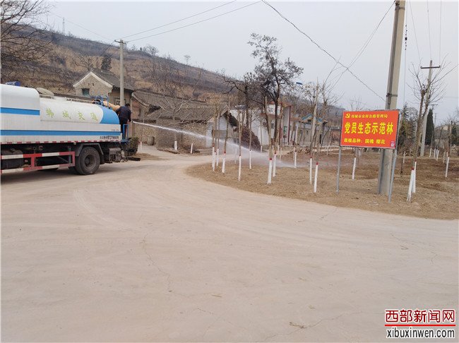 “绿水青山就是金山银山”这是习总书记要求我们努力走向社会主义生态文明新时代必须树立的强烈意识。春灌是保护树木免受冻害的有效措施之一,2月21日,韩城市农村公路管理局如期而至,书记薛云鹏带领包联干部开着水车对贫困村徐村“党员生态示范林”小树进行春灌养护,我们要让小树喝好,春天才会发芽茁壮成长。