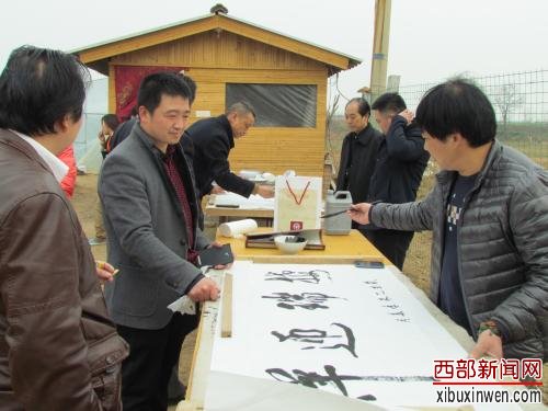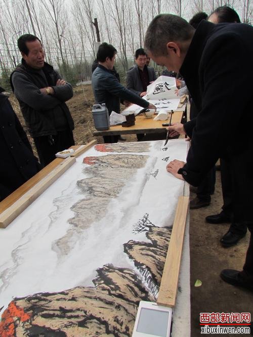 新西部在线 孙涛 张妍报道 :2015年3月10日,为践行习近平总书记文艺工作座谈会会议精神,沐浴着“两会”春风,陕西百名书画家走基层送画下乡、艺术采风创作系列活动在西安灞桥区万亩草莓园拉开帷幕。活动由陕西紫光阁廉政文化研究中心和新西部在线主办。