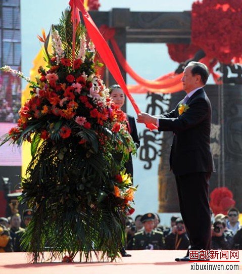 郁慕明在壬辰(2012)年清明公祭轩辕黄帝典礼上敬献花篮