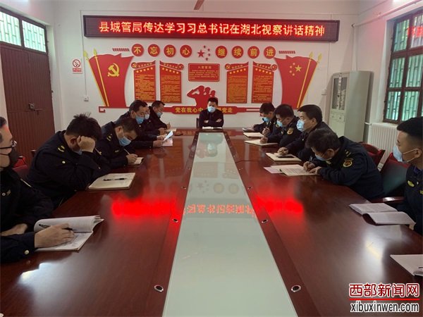 3月16日,潼关县城管局组织中层以上领导干部,各支部委员传达学习习近平总书记在湖北省考察新冠肺炎疫情防控工作的重要讲话。会议由党组书记、局长张向阳主持。