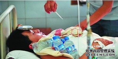 昨日,已住院治疗3天的毛毛反复高烧不退,父亲用冰冻矿泉水和牛奶为他物理降温