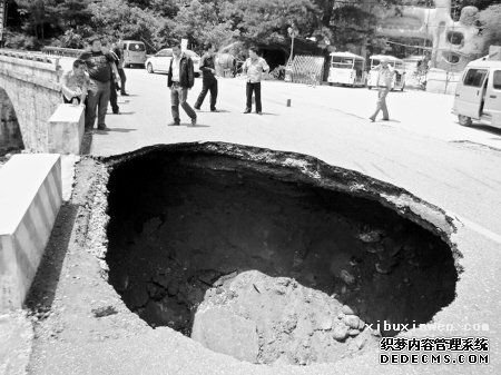 8月1日中午,大坪峪景区门前原本平坦完好的108国道路面突然发生塌陷,出现长约8米、宽约3.5米、深约8米的大坑,途经此处的几辆小车采取紧急措施才避免了事故的发生。有关部门在勘察现场后分析称这是路侧的大坪峪景区河流涌出的洪水经108国道下的桥涵时,因水急量大排泄不畅,从旁边的山体石缝渗涌入路面下方,长时间冲刷造成的。这种情况洪水未退时难以发现,水退后泥石、路基吸附力减弱才会发生塌陷。佛坪公路管理段人员告诉记者,近年来虽然每年都有暴雨,但108国道上从未出现过这样的大坑,即使在2002年“6·9”特大洪灾中也没有出现过。目前,佛坪公路管理段、路政部门等正在对大坑进行填修。