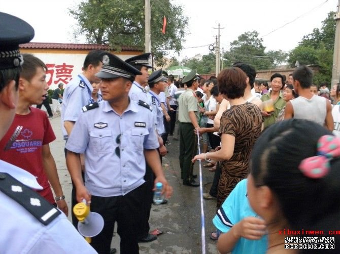 西部新闻网消息:(记者:陈党稳 海浪)8月10日下午,中华儒商总会、慈善总会在陕西乾县第一高中捐赠义演现场观众爆满,许多持门票的观众被警方设卡堵在学校大门和西侧的小门口,现场曾几度骚乱失控,警方驾驶消防车面对人群开启消防泵冲击镇压未果,场面混乱不堪,众干警向人群敬礼致歉。