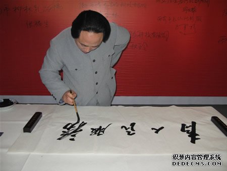 毛泽东的扮演者--特型演员宋晓飞前来助兴 现场书写毛体书法